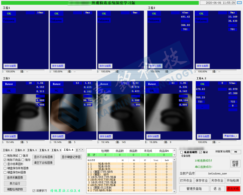 汽車廠為了遞減人力工時、返修工時,提高車輛的檢出率,汽車廠裝配車間根據(jù)各自產(chǎn)線的情況提出了檢測需求,底盤檢測的類型主要分3種:螺栓/螺母無漏緊固、卡扣無漏裝配、保持夾無漏裝配;其中不同車型需要檢測的點數(shù)也不同,檢測的難度較大。嘉銘科技針對汽車廠裝配車間的質檢要求,針對性研發(fā)出汽車關鍵零部件智能識別檢測工作站,有效解決汽車廠裝配車間的痛點。汽車關鍵零部件智能識別檢測工作站特點:1、本工作站采用多相機組合的方式對汽車底盤進行檢測,檢測范圍大,檢測范圍可達1.9m*4.8m。2、車體寬度方向通過多個相機的拍照合成車體寬度方向的圖片,在車體運動過程合成車體長度方向圖片從而實現(xiàn)整個車底的大區(qū)域的檢測。3、特征定位方式實現(xiàn)車體位置的感知,即使車體的運動速度變化,也能準確捕捉到車體相對于視覺系統(tǒng)的相對位置,從而實現(xiàn)準確檢測。4、系統(tǒng)與生產(chǎn)管理系統(tǒng)通過網(wǎng)絡連接,自動獲取檢測車輛的車型及出廠號等車輛信息,啟用對應的檢測程序,檢測記錄與車輛信息綁定,便于追溯車輛生產(chǎn)信息。汽車關鍵零部件智能識別檢測工作站有效解決汽車廠底盤裝配質檢的問題,提高底盤裝配質檢的效率,降低返工率提升生產(chǎn)利潤,本工作站適用于各個行業(yè)的生產(chǎn)線上在線檢測、異常實時告警應用或剔廢應用,防止因工人疏忽或設備異常時,導致產(chǎn)品的漏、錯、多加工等現(xiàn)象,以確保產(chǎn)品的品質。